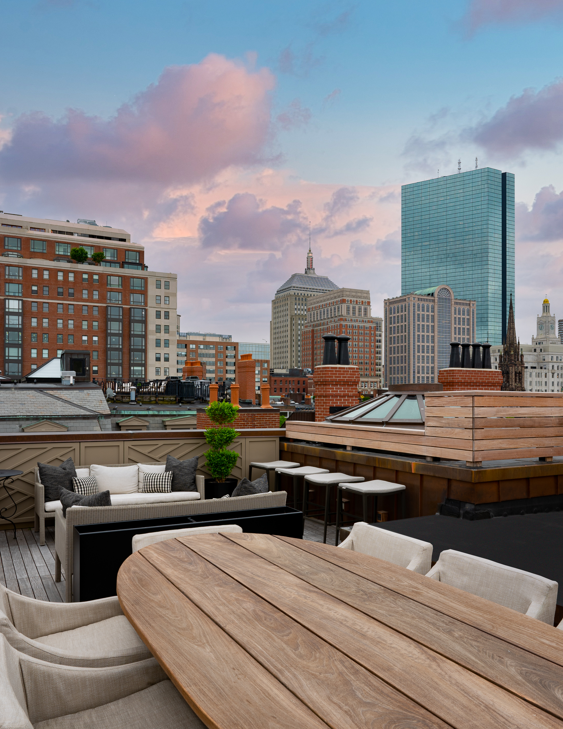 Located prominently facing the Public Garden, this stately pair of brownstones on Arlington Street was renovated top to bottom for modern use by EMBARC while maintaining timeless and traditional elements. A complete gut, EMBARC was able to reimagine these iconic Boston townhomes into a modern office building for our clients’ private equity firm and family office. The literal and symbolic heart of the project is the grand stair at the center of the building. Rising from the parlor level to the very top of the building, the stair is a visual and social connection for the occupants culminating in a filigreed skylight. Elegant and functional amenities are in abundance; from the automated subterranean parking system to the tree-top deck inset into the existing mansard roof.